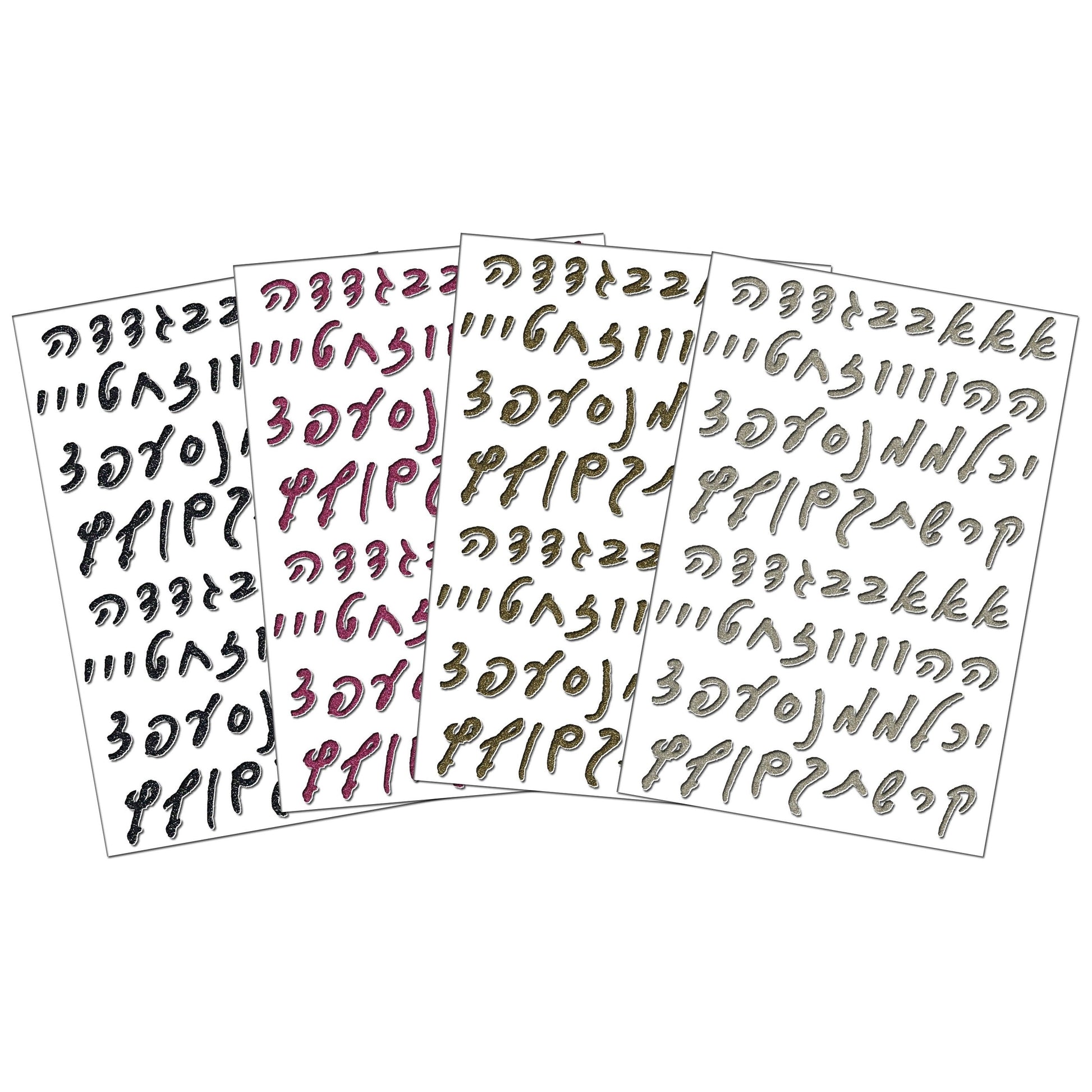 In the classroom, use these stickers to label alphabet charts, create letter-mounding activities, or decorate Hebrew folders and projects. At home, personalize your planner with script accents, brighten Sabbath crafts, or design custom Hebrew alphabet flashcards. In journals, mark initial letters, color-code Hebrew vocabulary, or build a decorative alphabet map on study pages. The tactile sparkle helps maintain focus and makes practice feel special rather than routine.