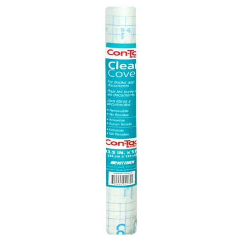 Kittrich Contact Paper Clear 13.5” X 5-Feet Transparent Self Adhesive Book and Textbook Covers for Paperbacks and Hard Covers Plastic Protective Covering